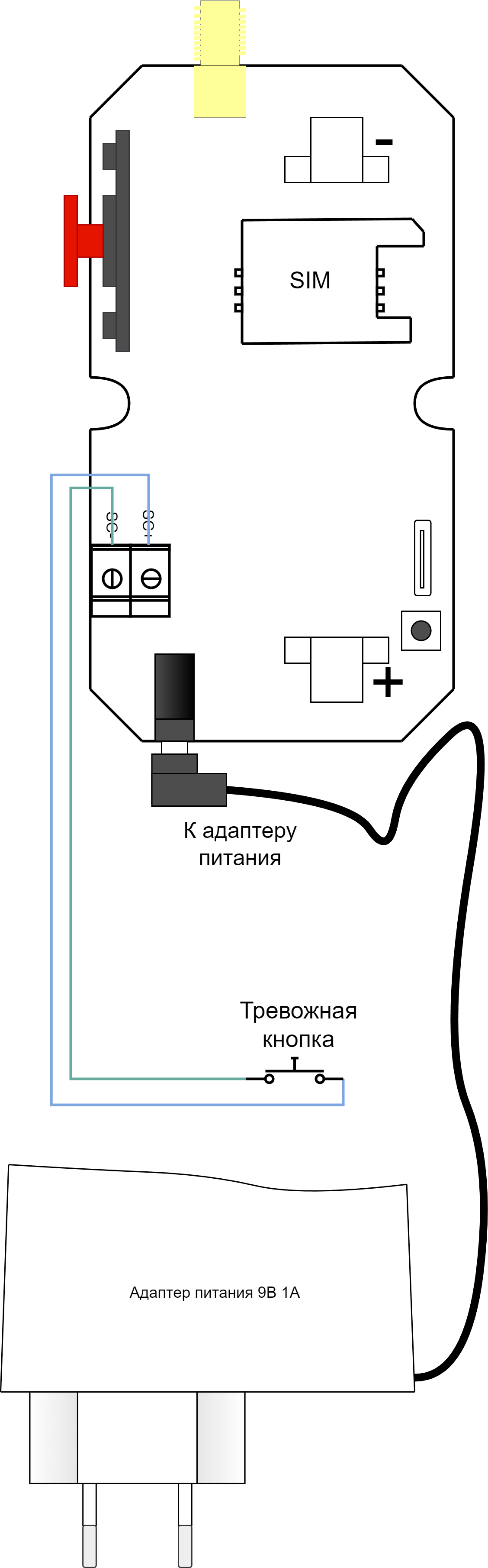 Панель позволяет подключить один проводной шлейф типа «сухой контакт» для тревожной кнопки.